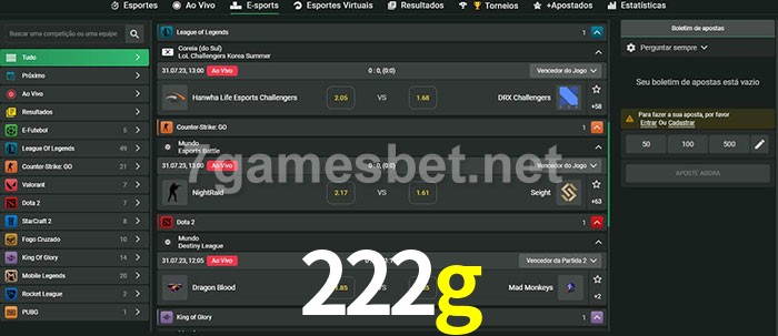 A aposta 222g oferece aos jogadores a experiência mais conveniente de apostas em eSports!